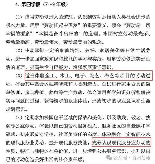 四、课程内容(四)第四学段(7~9年级) 任务群9:公益劳动与志愿服务