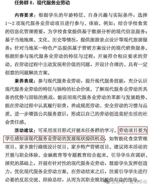 四、课程内容(四)第四学段(7~9年级) 任务群8:现代服务业劳动