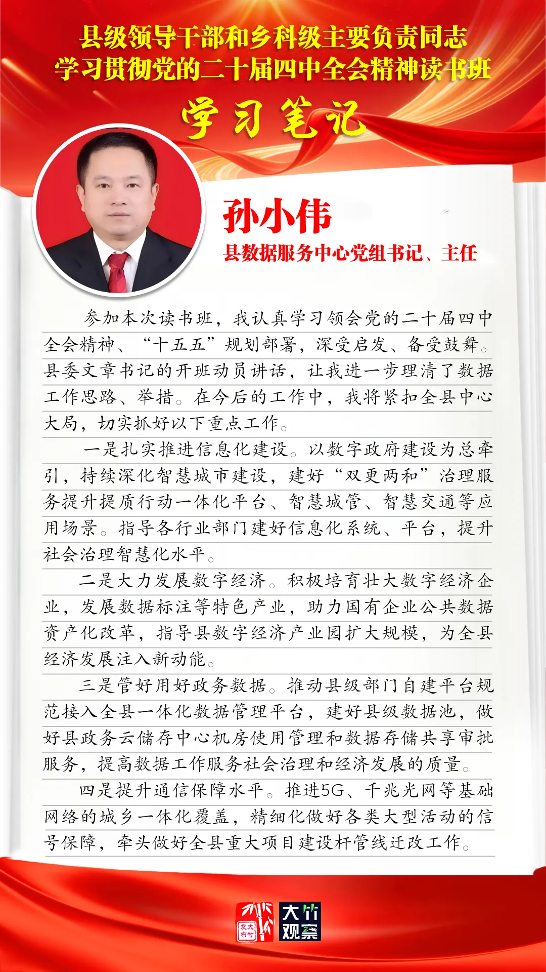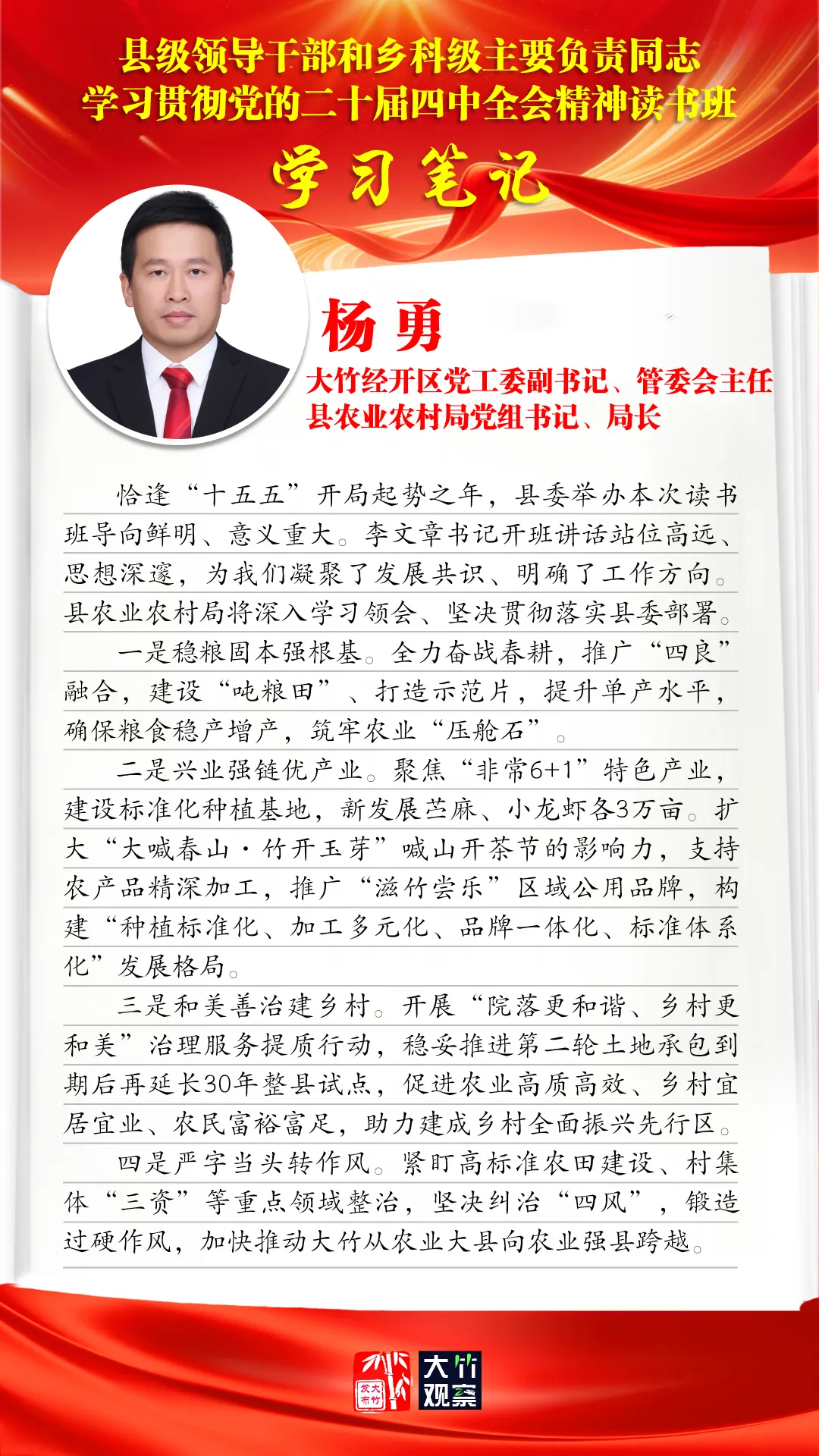 读书班结束后,全县各级各部门迅速行动、学以致用,立足工作实际深学细思、认真谋划,积极撰写学习笔记、交流心得体会,在总结收获中凝聚共识,在明晰思路中细化举措,切实把学习成果转化为推动大竹发展的实际行动。