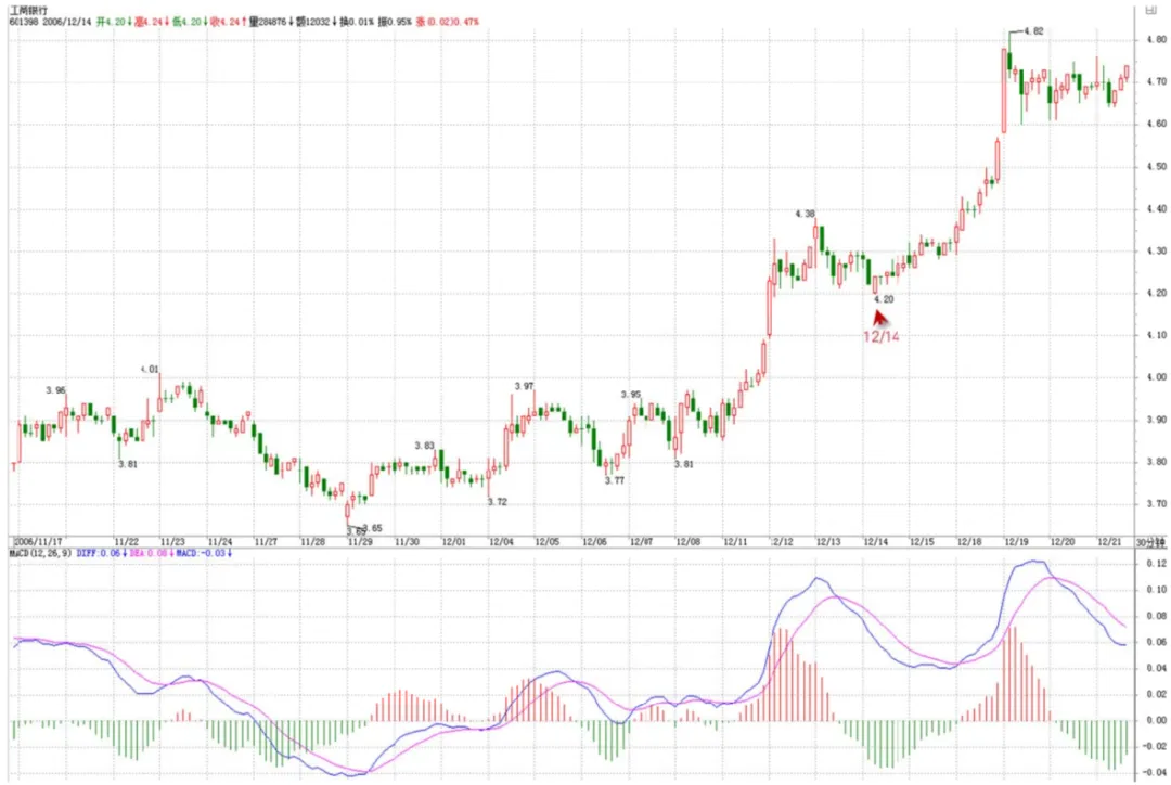 工商银行:对日线中枢来说,次级别是30分钟,而次级别的完成,需要再次级别,也就是5分钟图上呈现3段走势类型。这在工行14那天有着完美的表现。那天14.40左右刚好完成这三段5分钟的走势类型,你可以精确地找到4.2元的买点。请把这三层次的级别关系搞清楚。