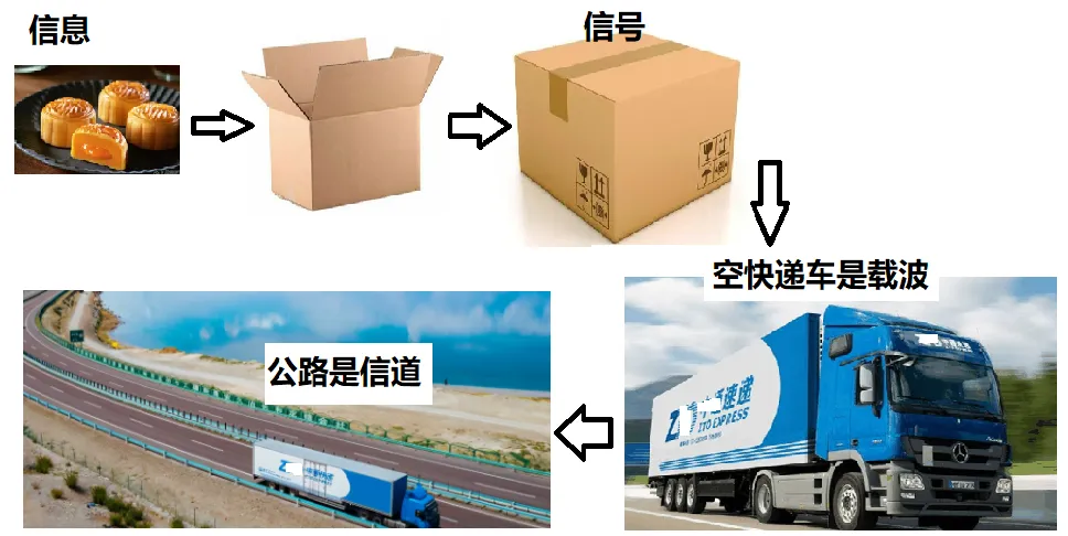 通信是为了实现“信息”的传输,被传输的“信息”是以“信号”的形式经过“信道”传输到接收端的。通常,被传输信号的频率都比较低,故经常称被传输的信号为基带信号。比如我们能够听到的语音信号,其实频率大概在20Hz~20KHz之间。而许多通信信道只允许某些特定频率范围内的信号通过,比如某信道可能只允许3GHz左右的信号通过。那么,显然,频率范围在20Hz~20kHz的语音信号,根本就不可能在只允许3GHz左右的信道上传输。但又必须把这段语音信号传送出去,该怎么办呢? 就需要把这个低频率的语言信号变成一个3GHz左右的高频信号。问题是怎么将低频变成高频呢?方法就是将这个低频信号A加载到另一个3GHz左右的高频信号B上,变成一个新的高频信号C,使得新的高频信号C的频率范围满足信道的要求,保证C能够在信道中传输。其中,这个新的高频信号C一定是包含了原低频信号A所要传输的信息,这个所要传输的信息通过C的幅度、频率或者相位来体现,另外被加载的高频信号B则不能含有任何能够干扰信号A的信息。那么这种把低频信号A加载到高频信号B形成新的高频信号C的过程,就称为调制。反过来,从高频信号C中恢复出来信号A的过程,就称为解调。A就称为基带信号,B称为载波信号,C称为频带信号。载波信号一般用正弦信号cosωct表示,正弦信号本身不含有任何信息量,不会对被传输的信息带来任何干扰。比如中秋节想要将月饼送给自己远方的亲人,月饼本身不会自己跑到远方亲人手里,所以需要通过快递快递公司送过去。那么,月饼就是信息,装有月饼的快递包裹就是信号,快递包裹自己不能跑到远方(速度很慢),需要通过快递车(速度很快)在公路上送到亲人手里,这里的快递车其实就是载波,而公路则是信道。所以,被传输信号的频率与信道的频率要求不一致,是进行调制的重要原因。另外,经济成本、可实现的难度等问题也是进行调制的原因之一。假如以无线通信的方式传输该频率为10KHz的语音信号,如果不进行调制,那么发送天线的尺寸应该是被发送信号波长的十分之一甚至四分之一。