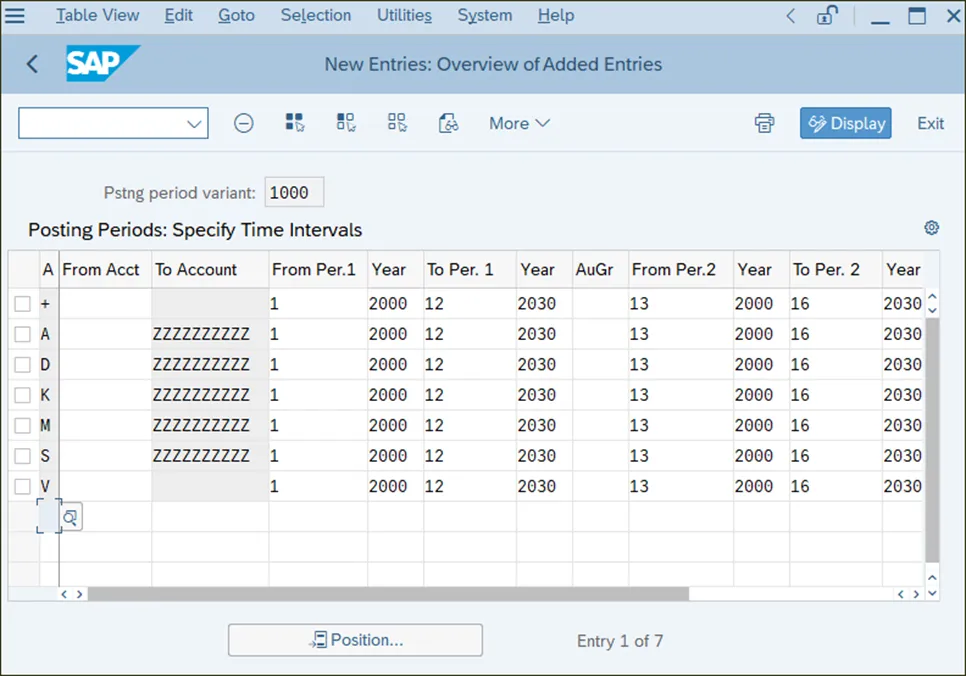 期末关账是总账流程的重要组成部分。每个期间结束后(大多数公司以日历月为期间,但会计年度变体可能有所不同),公司必须执行多项程序,这些程序通常在其期末日程表中都有明确规定。在日历年结束时,还必须执行多项年终活动。在 SAP S/4HANA 中,您可以控制允许过账的期间。这种控制可以按账户类型确定,也可以对所有账户进行统一控制,并使用过账期间变式进行配置。过账期间变式将不同类型账户的过账期间组合在一起,并在公司代码级别进行分配。要定义过账期间变式,请按照菜单路径:财务会计 • 财务会计全局设置 • 分类账 • 会计年度和过账期间 • 过账期间 • 定义未结清过账期间的变式。在这个屏幕上,您可以将过账期间变式定义为一个定制对象。从顶部菜单中选择“新条目”,并为公司代码 1000 创建一个新的变式 1000,如下图 所示。下一步是将过账期间变式分配给公司代码。按照菜单路径:财务会计 • 财务会计全局设置 • 分类账 • 会计年度和过账期间 • 过账期间 • 将变式分配给公司代码。将您刚刚创建的变式(1000)分配给公司代码 1000,并点击“保存”按钮保存您的条目,如下图 所示。现在,您必须按照菜单路径:财务会计 • 财务会计全局设置 • 分类账 • 会计年度和过账期间 • 过账期间 • 打开和关闭过账期间,在这个过账期间变式中定义实际的期间。在弹出窗口中输入过账期间变式“1000”以确定工作区域后,您将看到一个空白屏幕,没有定义任何期间。输入过账期间,如下图所示。在第一列 A(账户类型)中,定义了该行中的过账期间规则对哪些不同的账户类型有效。可能的账户类型如下:现在,定义规则将适用的起始账户(From Acct)和结束账户范围。在这个示例中,不对账户编号设置任何限制。接下来,定义起始期间/年份和结束期间/年份的组合。此范围内的期间允许过账;此范围之外的任何期间都将关闭。您可以在可用的三组列中输入多个区间。输入一个从 1 到 12 的期间范围,这是一个会计年度内正常的 12 个会计期间,然后输入从 13 到 16 的特殊期间,这些特殊期间用于在会计年度结束后进行特殊调整过账。当您实施 SAP S/4HANA 时,必须首先配置这些期间。通常,您会保持较早的期间开放,但在系统投入使用后,配置期间以维护过账期间是一项用户任务,在应用程序菜单中也可以进行操作。会计政策将决定是只开放当前期间(这是最常见的情况),还是可能会保持两个或更多期间开放。你若喜欢,点个❤️谢先👇
