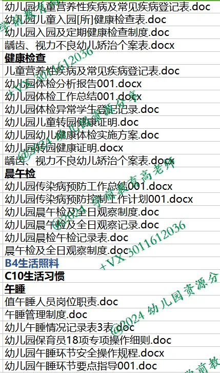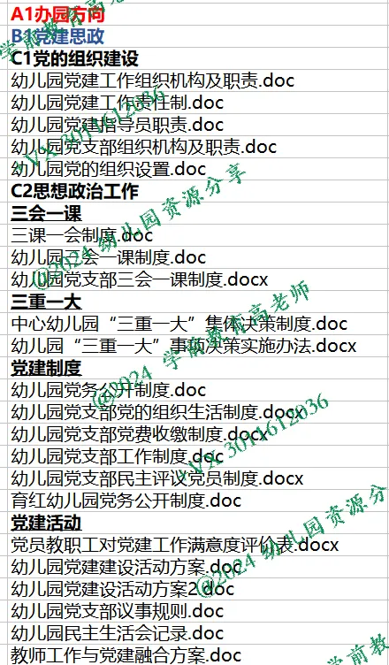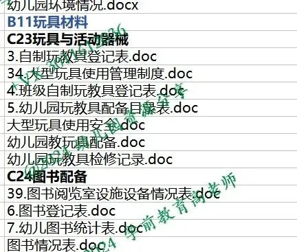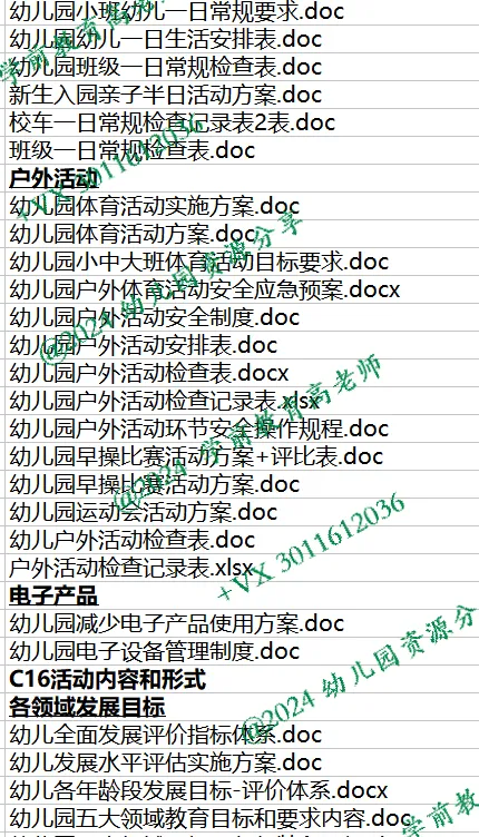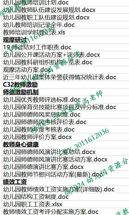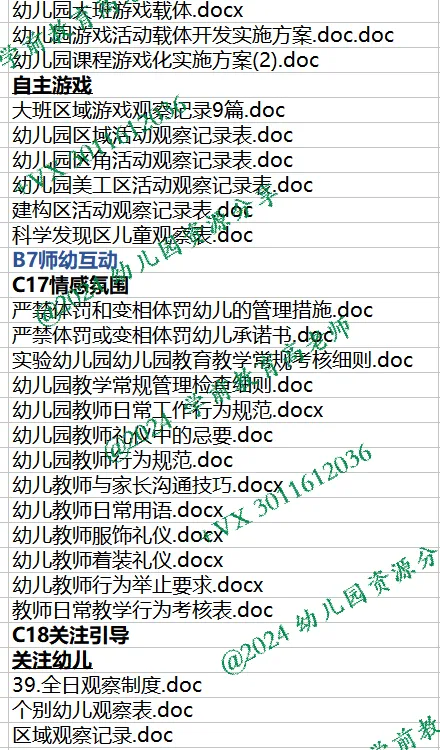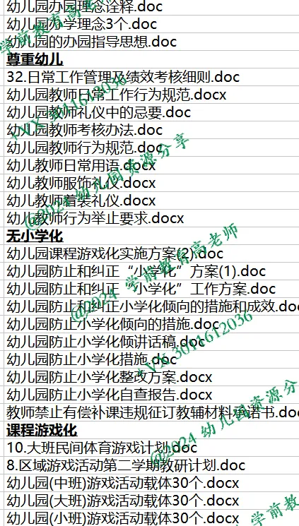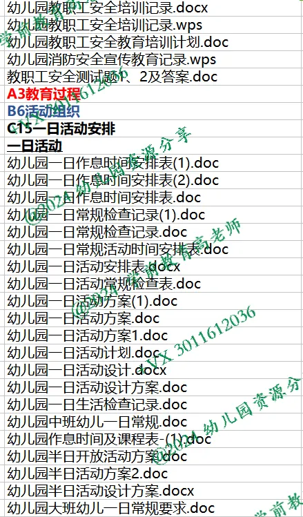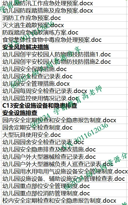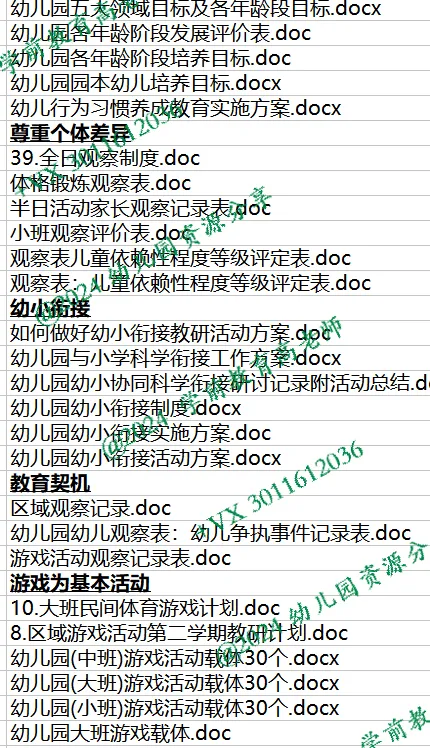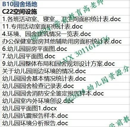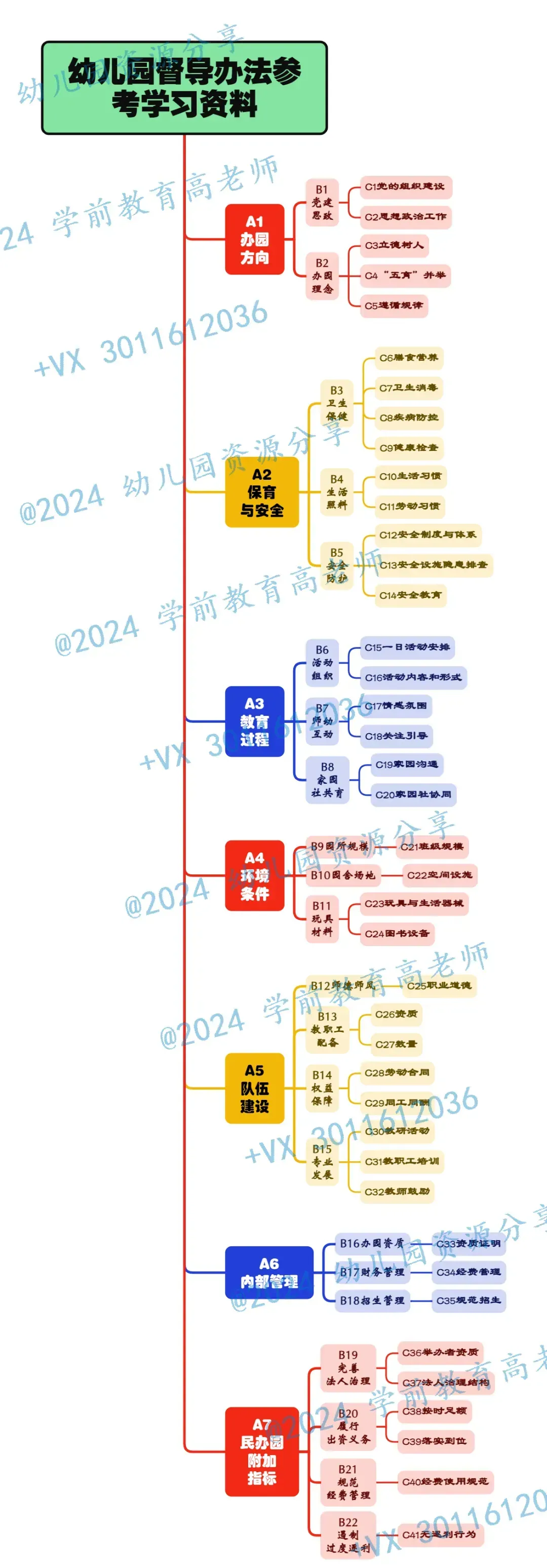 本套资料根据幼儿园督导评估办法最新细则整理而成,分A1办园方向—A2保育与安全—A3教育过程—A4环境条件—A5队伍建设—A6内部管理— A7民办园附加指标,对各观测点均有很好的体现,对幼儿园提高保育教育质量有很好的作用。@+VX 3011612036,全套1003个文档,分三级目录已经归类好。