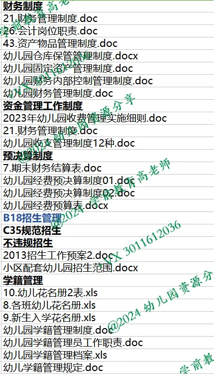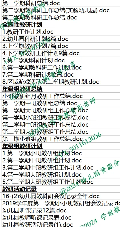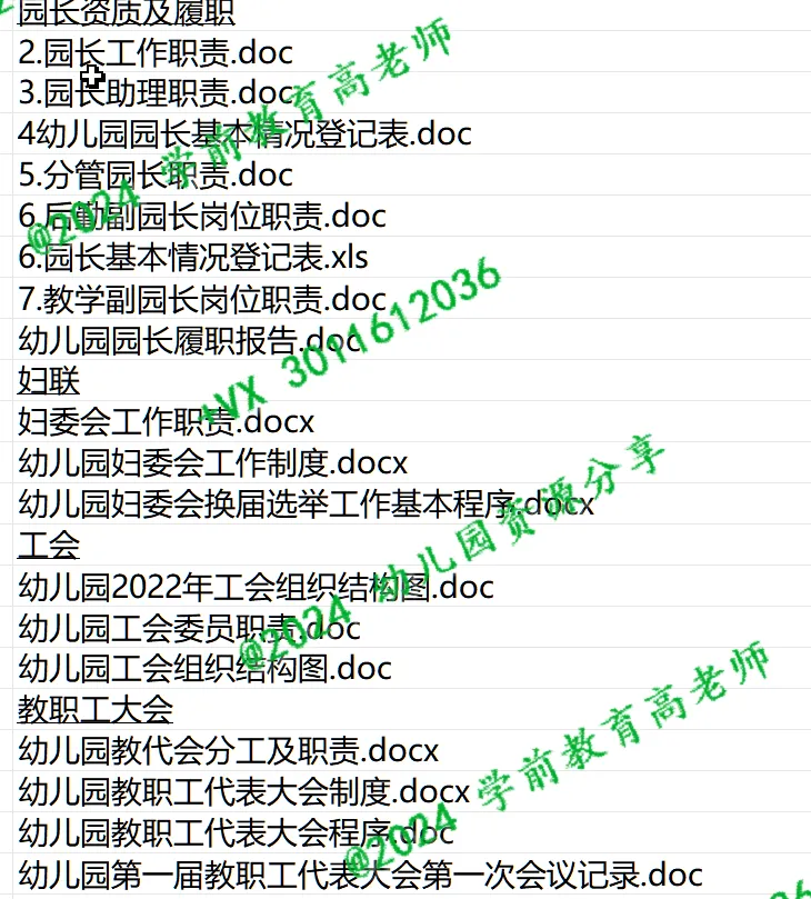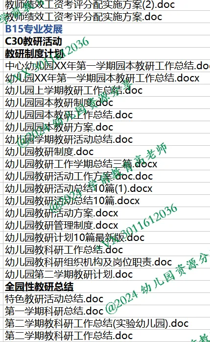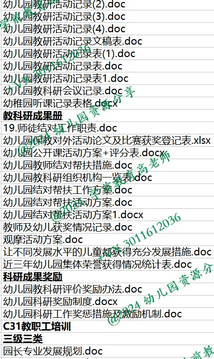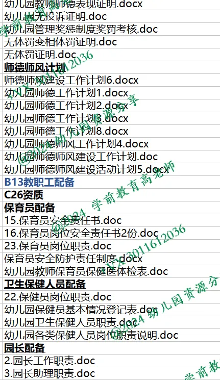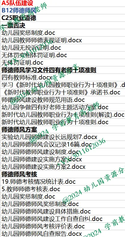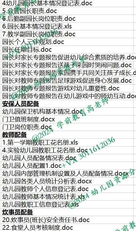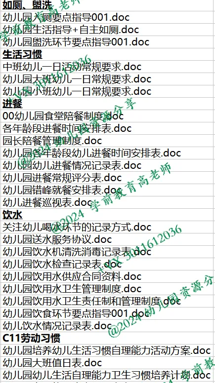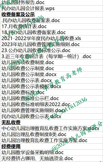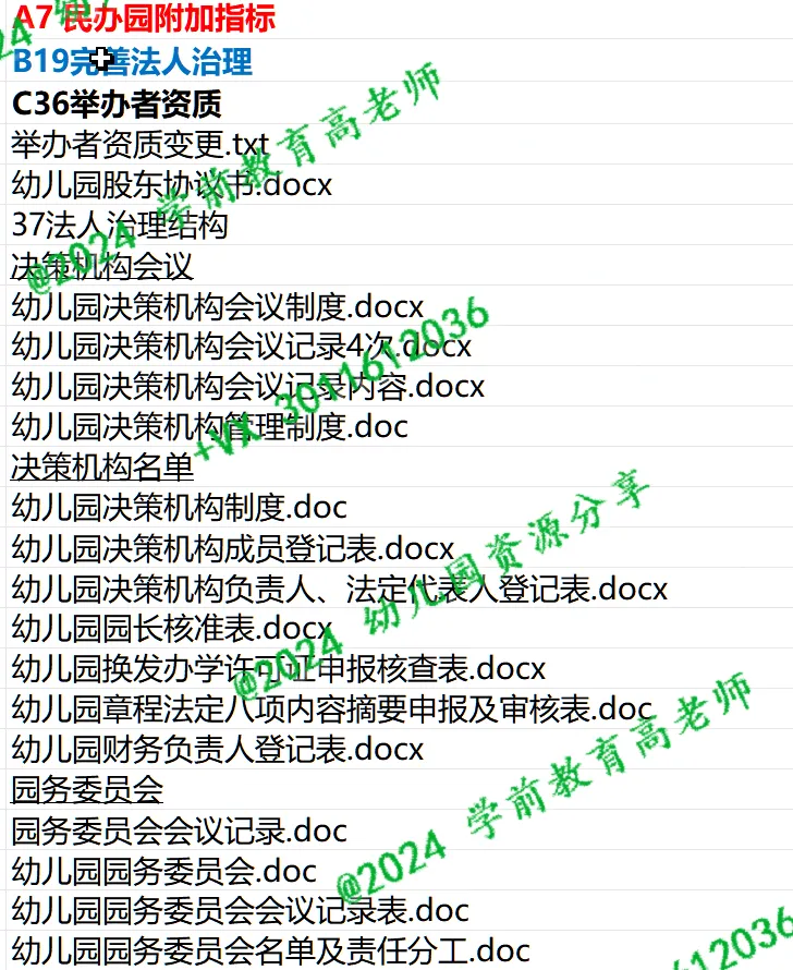 本套资料根据幼儿园督导评估办法最新细则整理而成,分A1办园方向—A2保育与安全—A3教育过程—A4环境条件—A5队伍建设—A6内部管理— A7民办园附加指标,对各观测点均有很好的体现,对幼儿园提高保育教育质量有很好的作用。@+VX 3011612036,全套1003个文档,分三级目录已经归类好。