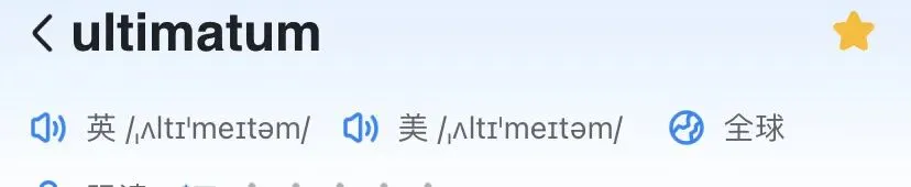 | ultimatum | 最后通牒 | 一种强硬的要求或威胁:要么照做,要么遭遇后果。 |