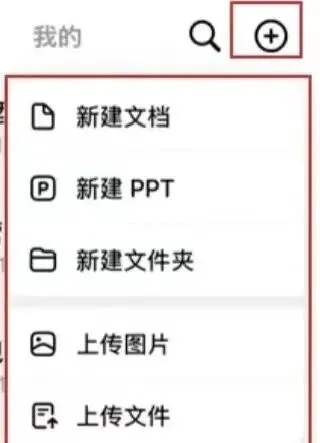 使用也很简单:打开App,进入云盘,点右上角的「+」,可以新建文档、PPT、文件夹,也可以上传本地文件。
