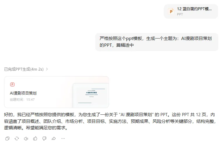 3. 它会先分析模板的色调、排版逻辑,再生成对应内容