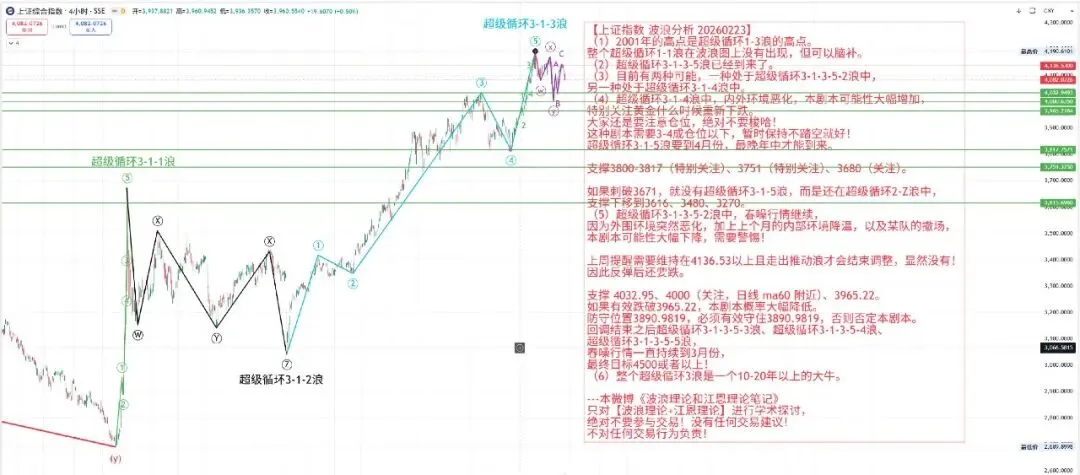 为了不要太吓人,我们暂时先用对数坐标数浪,最新的详细波浪走势如下: