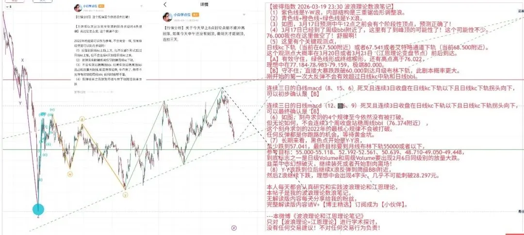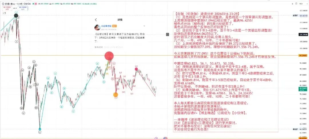 此外微博每天也有行情分析,每天都有【无解读版本的波浪理论学习笔记】(无解读版波浪理论数浪笔记, 帮助大家数浪, 懂看波浪分析图的可以自行参考),不需要苦等每周一的文章。