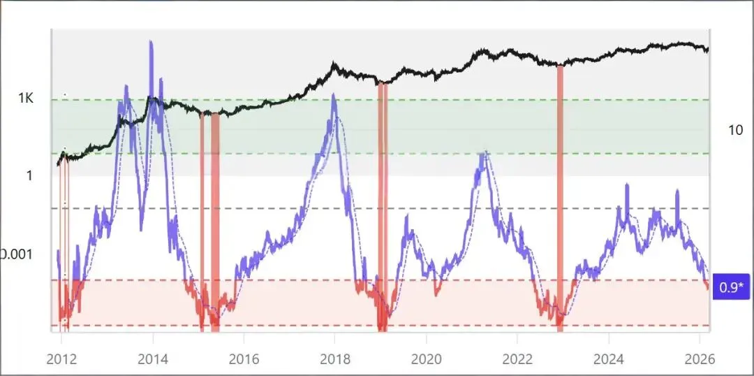 非常揪心,前阵子已经降到0.8, 这周又上升到0.9了!还得磨啊!等待跌到0.5附近然后出预警,就是真正的大抵抗!