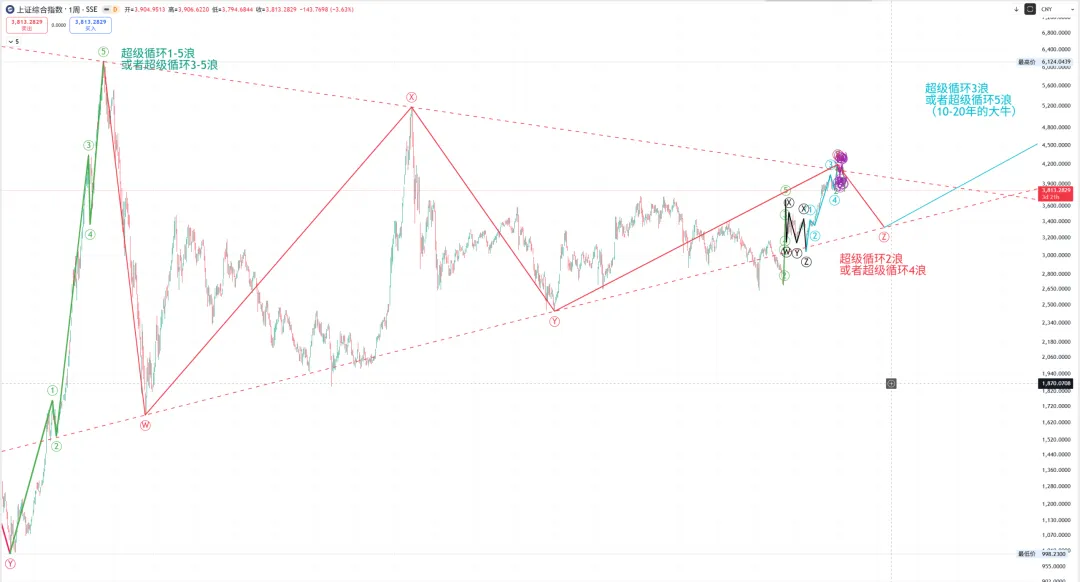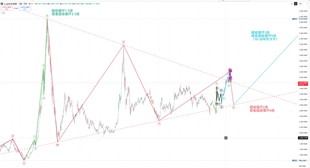 从波浪理论角度看来, 大爱2024年9月份开始的那一波牛市其实不是牛市, 而是熊市中的极大上升。真正的牛市是从这次黄金坑开始!这次黄金坑才是10年长牛的开端!