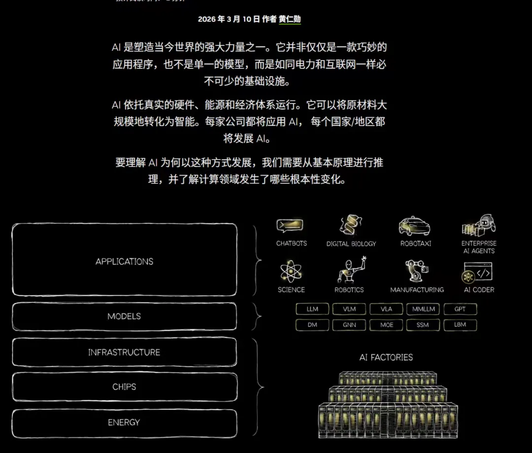 放眼全球,我们看到芯片工厂、计算机组装厂和 AI 工厂正在以前所未有的规模建设。这正在成为人类历史上规模最大的基础设施建设。
