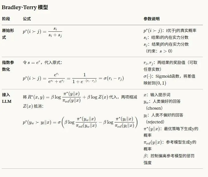 上述推导环节中用到的Bradley-Terry 公式用来建模成对的公式。