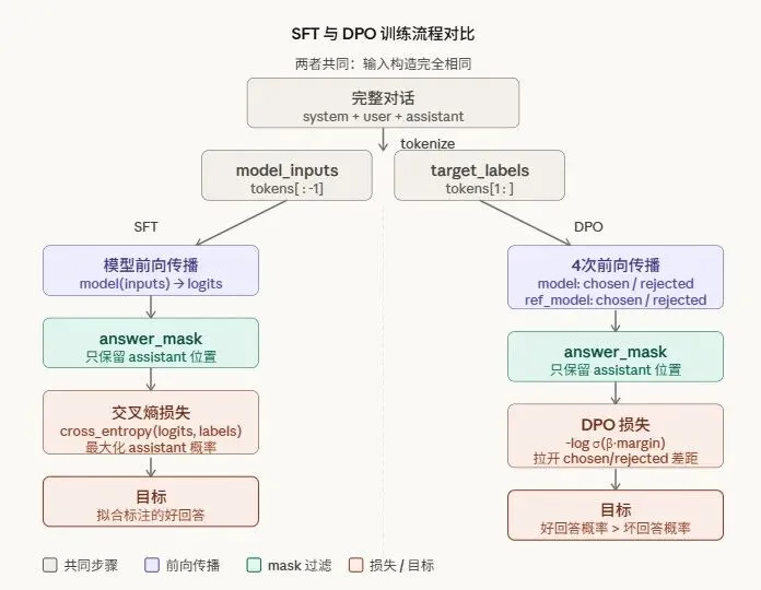 其中SFT和DPO两个阶段对数据集的处理稍有不同。