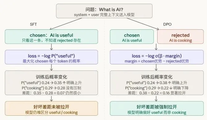 以"问题:What is AI?"为例,SFT模型和DPO模型的区别如下。