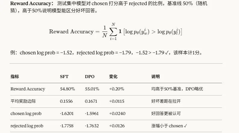 相比原始的Qwen2.5-0.5B-SFT模型,Qwen2.5-0.5B-SFT-DPO模型理论让模型输出偏好文本。