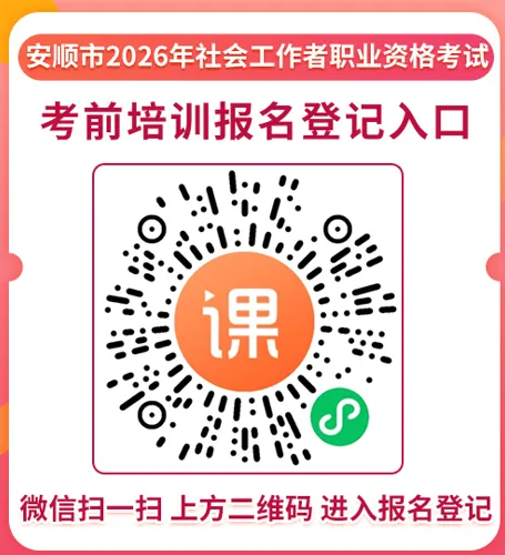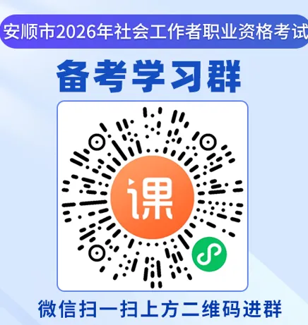 进群方式:使用微信扫一扫,扫描下方二维码,根据报考级别(初级、中级)进入“安顺市-2026社会工作师考前培训群”参与学习互动。