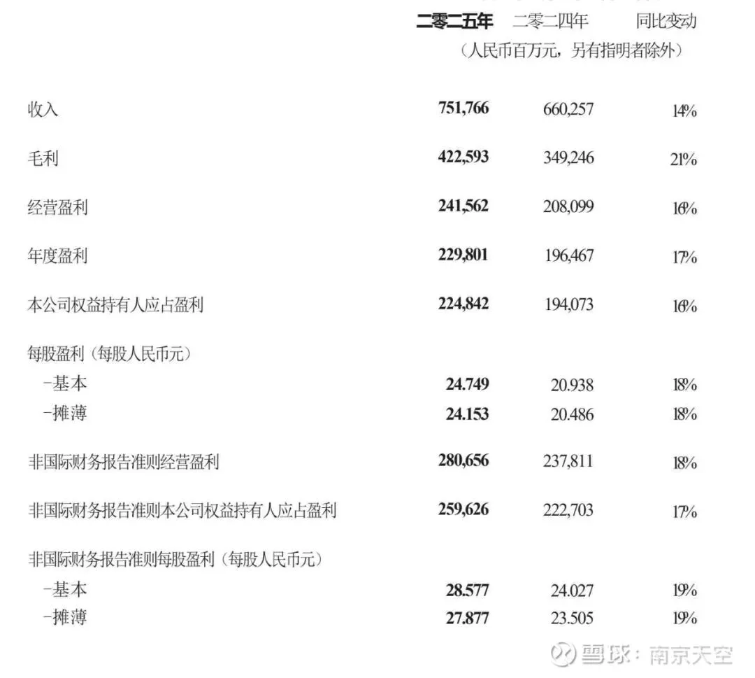 1、全年收入7517.66亿元,同比增长14%;非国际财务报告准则净利润2596.26亿元,同比增长17%。更亮眼的是综合毛利率跃升3个百分点至56%,创十年新高。