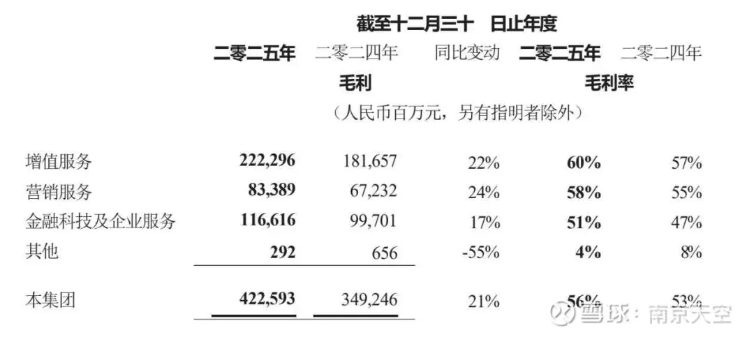 1、增值服务3693亿,增长16%,毛利率60%,增长3个百分点。