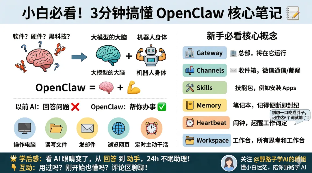 以前AI只能「回答问题」,现在AI能「帮你办事」——这就是OpenClaw的核心!