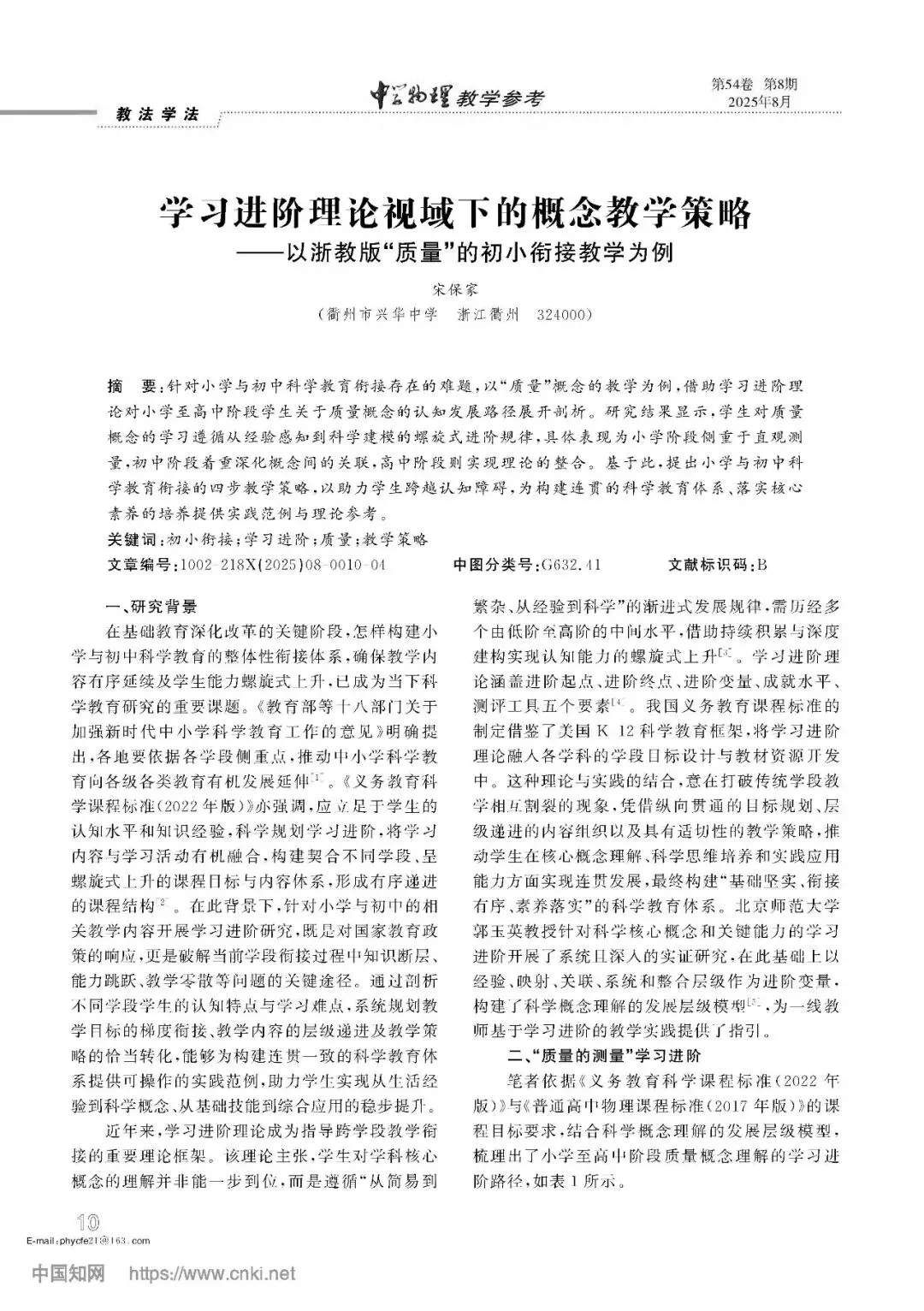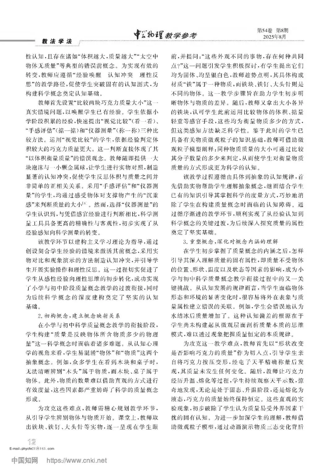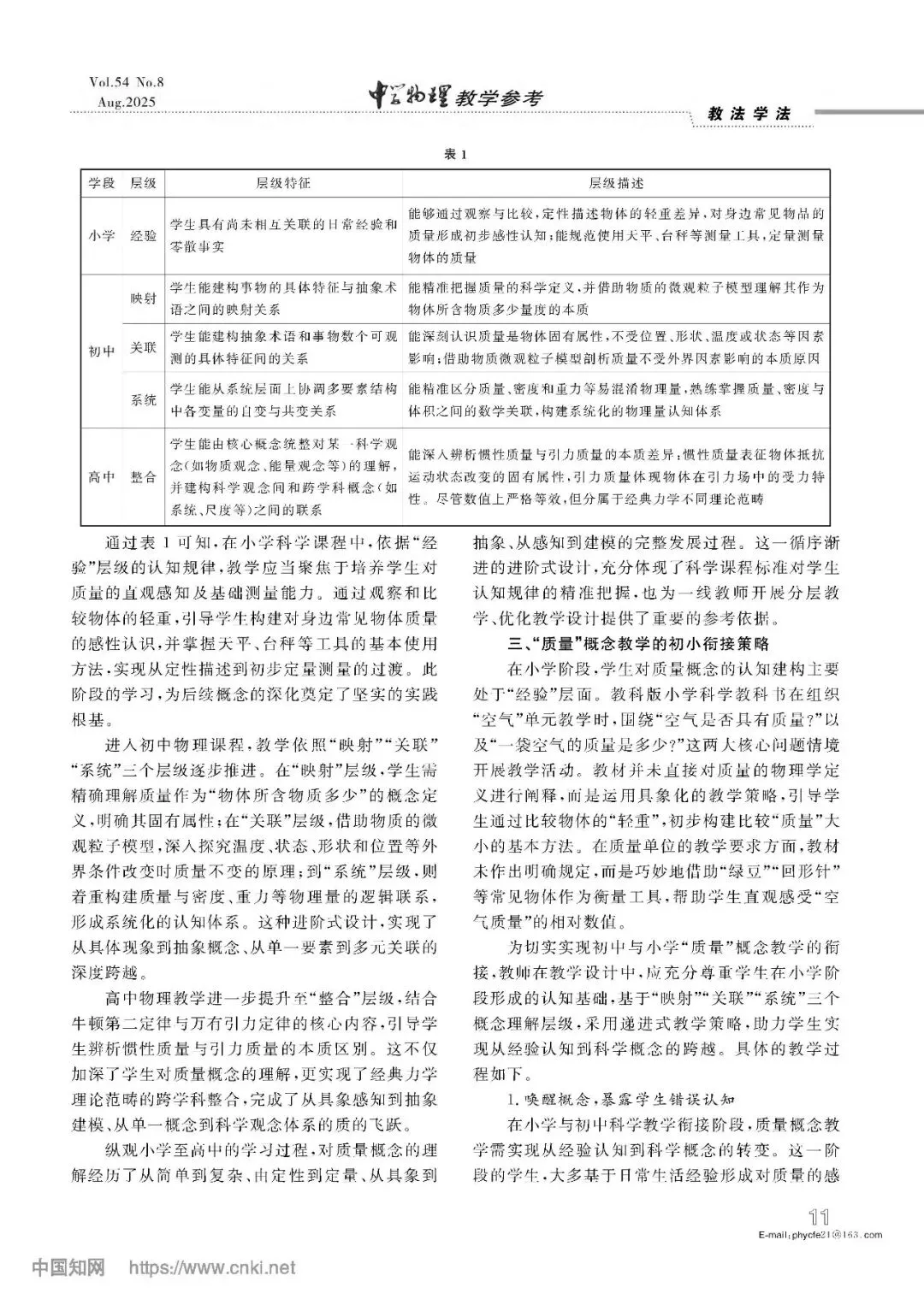 【教学素材】学习进阶理论视域下的概念教学策略以浙教版“质量”的初小衔接教学为例