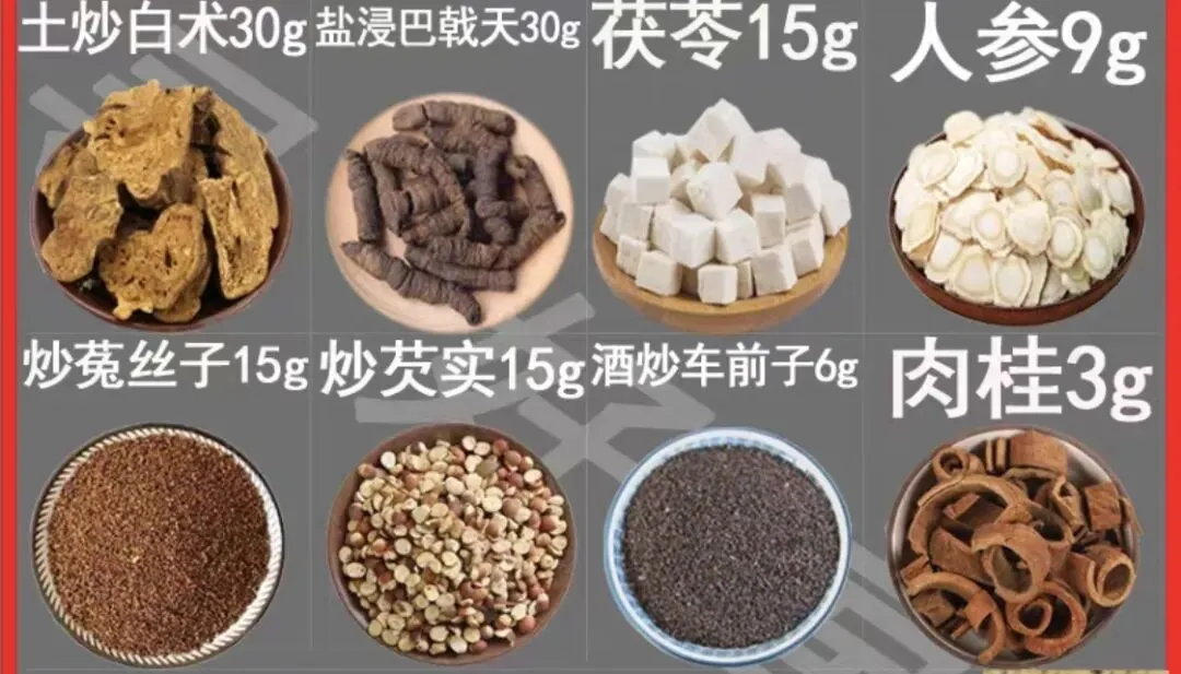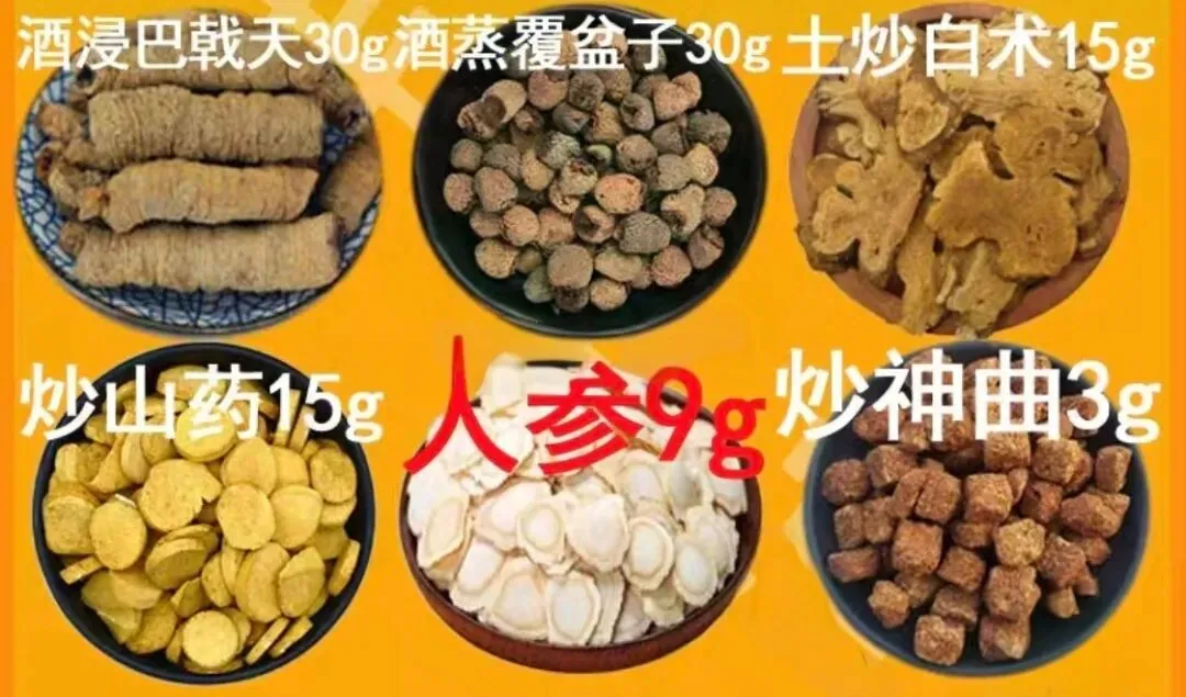 熟地:甘微温,归肝、肾经,补血滋阴、益精填髓,与巴戟相配,体现阴中求阳之效,共同补益肾中元气。
