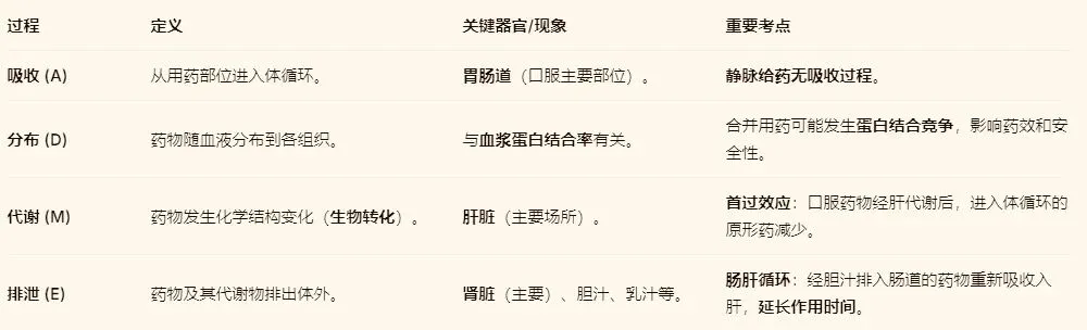 2.理解“ADME”动态过程:把药物想象成在体内旅行的乘客,理解它在每个环节(吸收站、分布网、代谢厂、排泄口)发生了什么。
