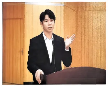 从正面拍摄时,拍摄者要注意机位与拍摄对象的眼睛平行,尽量捕捉他们目视前方、嘴巴微张的神情,同时注意桌面上名牌清晰、话筒高度合适。