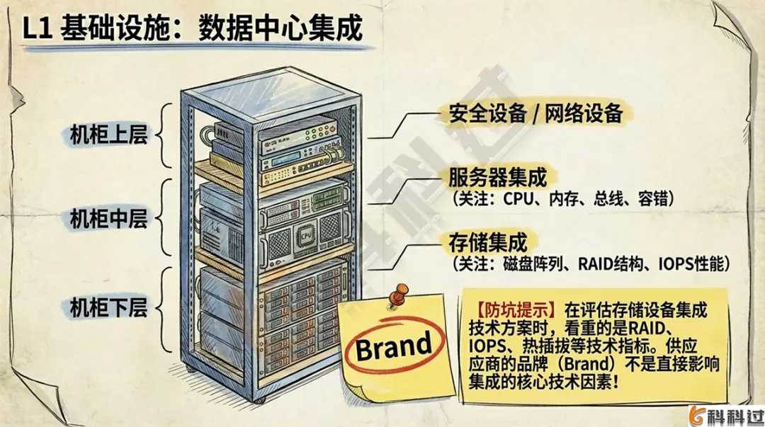 包括:机柜集成、服务器集成、存储集成、网络设备集成、安全设备集成。