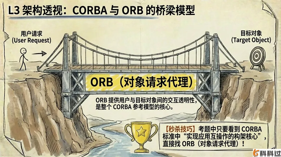详细解析:在CORBA中,各个模块的相互作用都是通过对象请求代理(ORB)完成的。ORB是以对象请求的方式实现应用互操作的构架,是整个参考模型的核心。