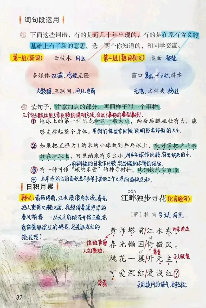 4. 诗词积累:背诵《江畔独步寻花》,感受唐诗的韵律美与意境美,拓展同类写景诗作的阅读。