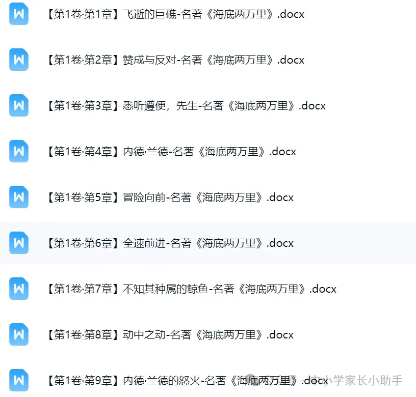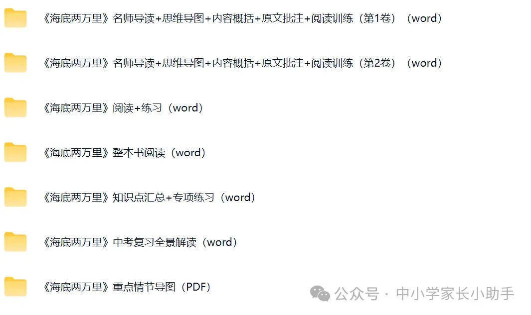 通过百度网盘分享的文件:《海底两万里》名师导读+思维导图+内容概括+原文批注+阅读训练(第1卷)(word)