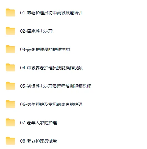 【养老护理员学习】养老护理员学习资料初中高级技能讲课教学全套教程(培训视频+ppt课件+试卷+相关资料等)