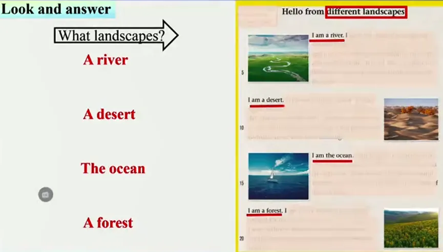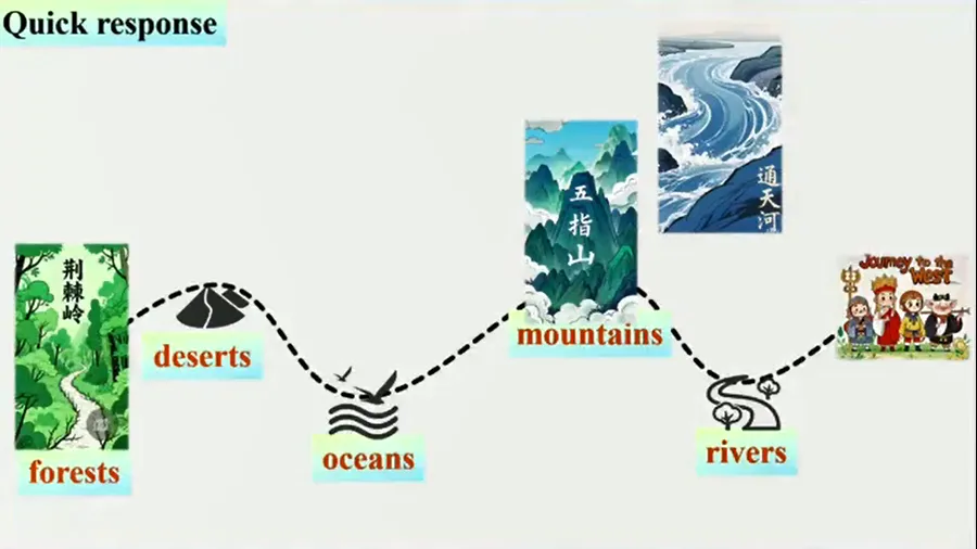 今天学习了一堂非常优秀的优质课。课例来自于2025江苏省优质课“AI深度赋能课堂分析”观摩研讨活动中赵霄霄老师。0赵老师的授课内容为 译林版七下第六单元的阅读 1 Hello from different landscapes.在赵老师的展示课之前还有另外两名老师的展示,前两位老师的课堂展示在我看来已经非常优秀,重难点很突出。直到看到赵老师的课堂展示,我一次次感慨:原来还可以这样上这堂课!原来可以这样处理文本!原来老师可以做到这么信手拈来!感慨之余,我又反复观摩了这堂课,总结出这堂课值得我们学习的地方。具体为以下几点:赵老师在课前播放西游记短片给学生观看,避免学生等到时感觉枯燥乏味。正式上课时,呈现西游记的主题图片,由西游记中的花果山、流沙河等地标自然引入本堂课要学习的四个地域风貌:river, ocean, mountain 以及desert.在文本解读上,赵老师从what,how,why三个方面对文本进行深度解读,而不是仅仅停留在表面的教什么、怎么教及为什么这么教这三个层面。赵老师先从整体引导学生关注语篇类型、引导学生通过文章的关键词句发现写作手法并思考为什么采取这种写作手法。然后赵老师具体到语篇内容和主题意义,对文本进行细节分析。在处理细节之前,赵老师先引导学生着眼于文本整体内容,然后在围绕着四种不同的地貌展开学习。赵老师先引导学生找到主题句并完成思维导图,然后就主题句思考what以及how两个问题,很自然地展开文本细节学习。(其余文本内容我就不一一展开分析了,大家可以观看文末视频学习)赵老师的整个教学环节不是生硬地拉着学生学,而是通过一个问题,一问接一问,一环扣一环,引导学生思考探究,自然而然地学。首先四个文本间,赵老师通过声音过渡到river文本教学,再从What can we learn from river?引入All the rivers keep running forward to the ocean. 自然过渡到ocean 的教学。从文本forest过渡到desert文本时,赵老师问了学生这样一个问题“which land have fewer trees?"若不是观摩赵老师的这堂课,我真的没有这样的巧思,不得不给赵老师竖大拇指。赵老师先提出:How does it looj?再由文本原句“I‘m home to hundreds of living things.”引导学生思考:What can we learn from the ocean?4. 注重对学生综合素质的培养,将价值观渗透到教学的每一个环节不像往常的课,我们总是在一堂课的最后生硬地上价值,为了价值观渗透而生搬硬套。赵老师基于文本词句,让学生从文本内容关注主题意义,总结出文本价值。更值得我们学习的是,赵老师引导学生启用已有的知识经验,将其学过的词汇盘活,让学生在学中用,用中学。5. 调动学生的各种感观,借助声音、图片和视频多感官参与学习从声音引入river,大海图片以及沙漠上的星空,以及多组图片对比观察,赵老师将学生的各部分充分调动起来了,这值得我们每一位老师去学习。最后附上本次课例视频。视频来源于B站,仅于学习,禁止商用。若侵权,联系删除。