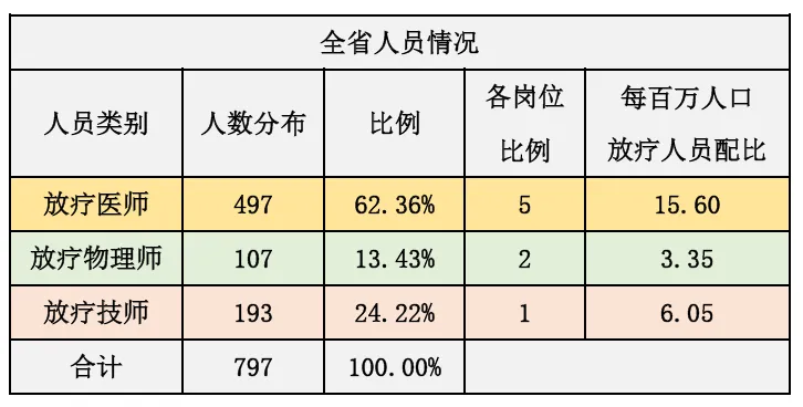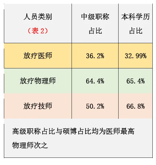 2.2 放射治疗单位人员配备情况
