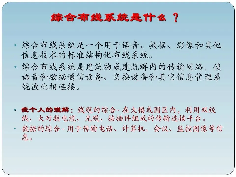 今年有很多新毕业的大学生进入智能化行业,他们首先面临的就是学习任务,一般第一个学习的系统就是综合布线系统,今天专门为弱电新人准备一篇学习文章,综合布线系统基础知识。希望对刚入行的新人有所帮助。