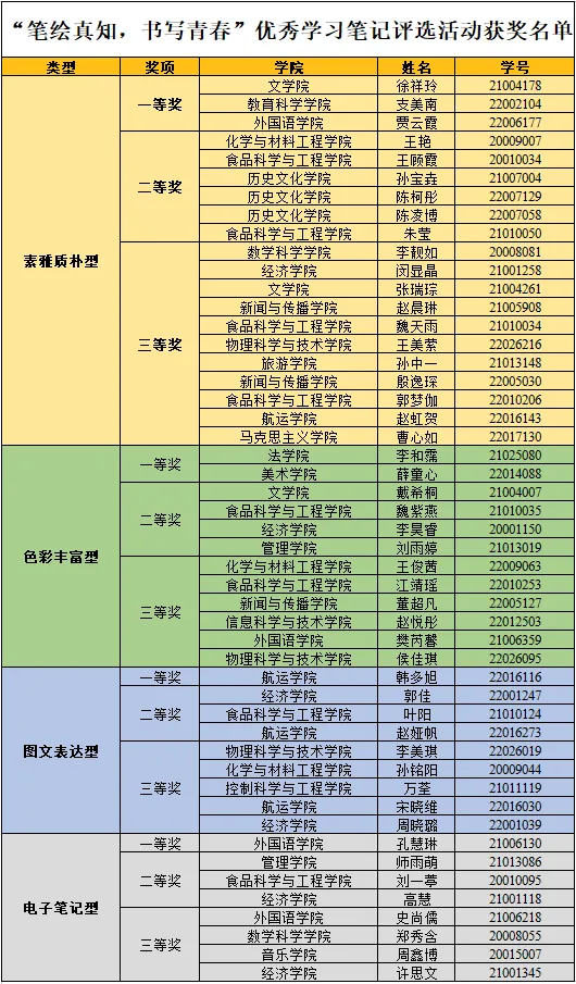 为加强学风建设,展现同学们用起伏的笔尖记录下的学习成果,4月20日至5月12日,学校开展了“笔绘真知,书写青春”优秀学习笔记评选活动。广大同学积极参与,经过严格的评选,共有49份作品获奖。现将活动获奖名单公布如下: