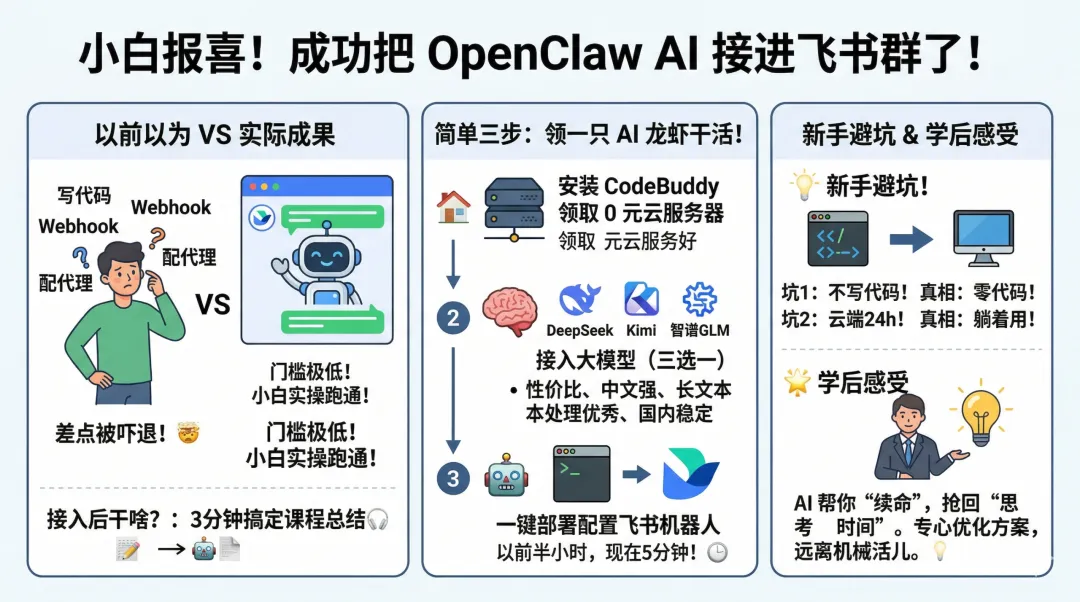 刚搞明白OpenClaw是啥,今天就来报喜啦——我成功把AI接进飞书群了! 🎉 兴奋到想原地转圈,必须跟你们唠唠这实操成果!