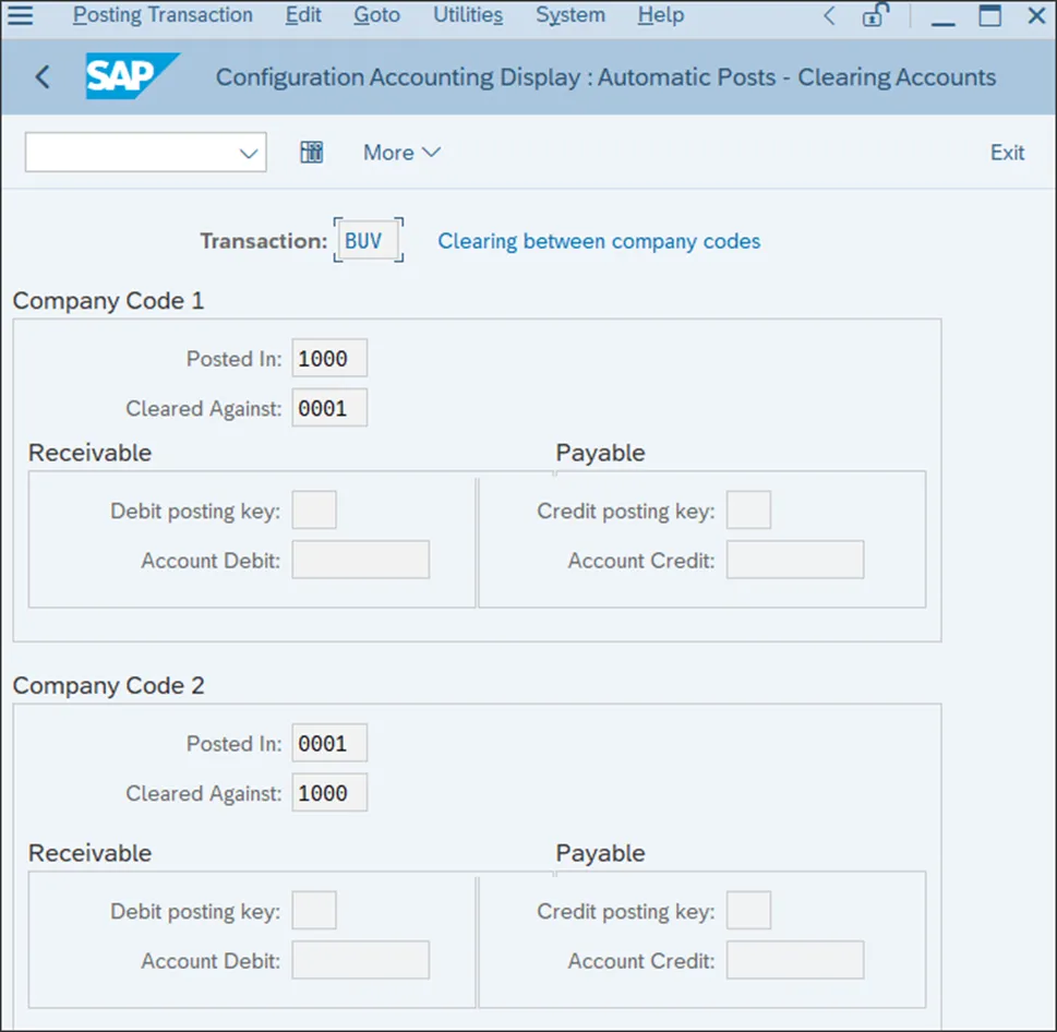 公司间对账(ICR)用于对集团内各法人实体之间的文件进行定期核对。其目的是确保集团内不同法人实体的公司间文件相互匹配。此功能可检查文件是否已正确分配,并允许您查找相应的公司间文件,必要时进行分配。要配置公司间对账,您必须配置公司代码之间的公司间关系。对于所有在公司间文件中进行过记账的公司代码,您需要分配在它们之间进行记账时借记和贷记的总账科目。要分配总账科目,请按照菜单路径“财务会计 • 总账会计 • 业务交易 • 准备跨公司代码交易”操作。系统会提示您输入要配置关系的两个公司代码,如下图所示。在下一个屏幕中,输入在与另一个公司代码进行公司间代码记账时,每个公司代码中记录的应收账款和应付账款科目。如下图所示,输入公司代码 1000 中记录的、与 0001 进行清算的应收账款和应付账款科目,反之亦然。为您的公司代码更新这些科目并保存您的输入。你若喜欢,点个❤️谢先👇