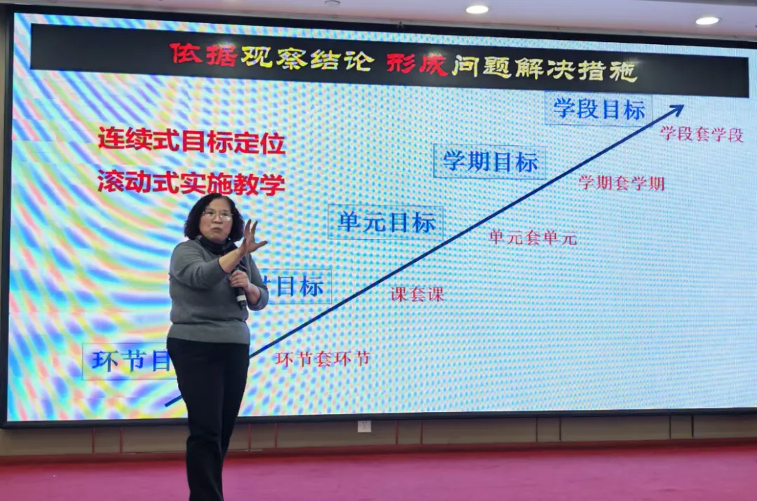 本次讲座以“基于课程标准的整体教学设计”为核心,杨淑平院长用自己从一线教师成长为教研员的亲身经历,深刻阐述了为什么要做整体教学以及如何做。