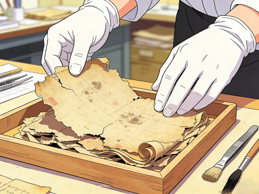 实操要点:主要以日常防护为主,如除尘、轻微去霉、平整处理,避免破损进一步加重,可参考DA/T 25—2022《档案修裱技术规范》中的局部加固方法,对轻微脆弱部位进行简单加固。
