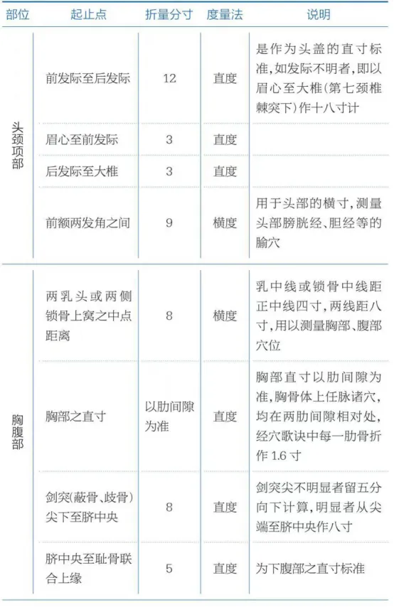 ·把某一部位分为若干等份,作为定穴位的标准。这种定位法,也叫分寸折量法、同身寸法,或等分法,也就是自身尺寸的折量法。
