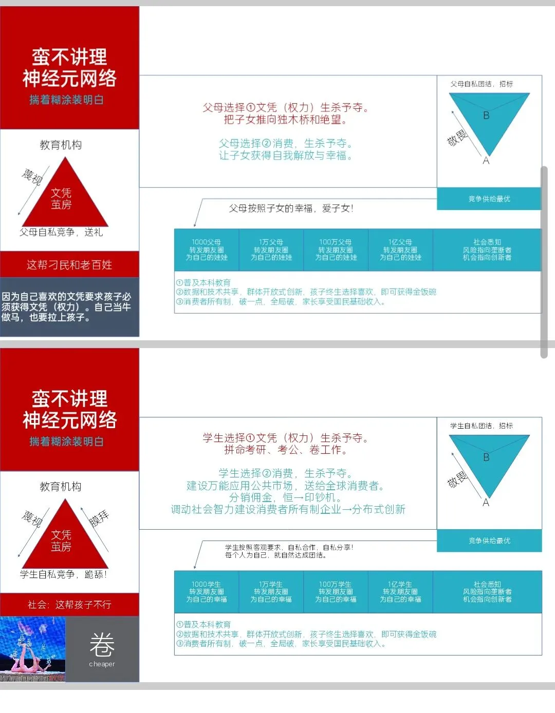 - 父母视角:为了孩子的文凭,自私竞争、送礼卷学区,把孩子推上独木桥,最终换来就业绝望;
