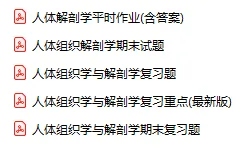 今天分享的资料是「0449-人体组织解剖学」电子版+学习笔记+知识点总结+期末考试重点+复习资料+习题集及答案+名词解释+历年真题试卷及答案+题库及答案+复习重点+思考题及参考答案+公式总结+考试重点基础题+知识总结+高清PDF可打印+免费分享!