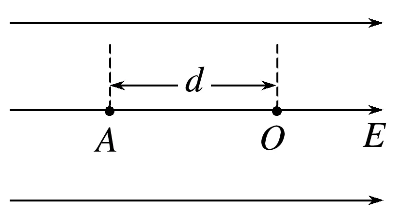 如图所示的匀强电场,电场强度为E,取O点为零势能点,A点距O点的距离为d。