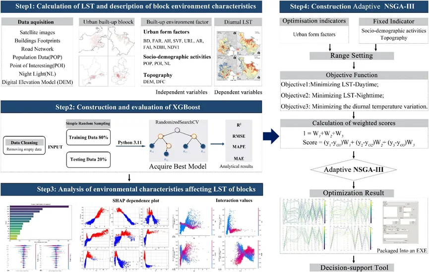 越来越多城市热环境研究开始采用 RF/XGBoost/LightGBM + SHAP,甚至进一步接入 多目标优化(NSGA-II/NSGA-III)。