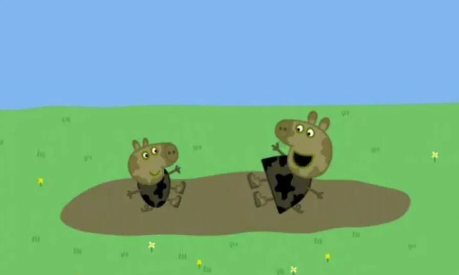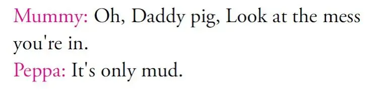例句:Peppa loves jumping in muddy puddles. Peppa 喜欢跳水坑。