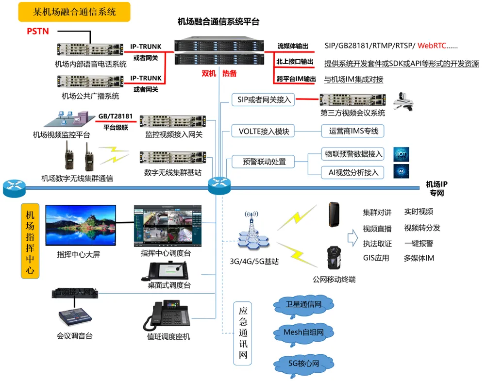 智慧园区融合通信系统整合了视频监控、视频会议、对讲系统、调度电话和广播系统等核心功能,并引入无人机巡检、物联网预警和AI分析等智能技术。通过GB/T28181标准协议实现平台级联,支持第三方系统定制接入,形成统一的通信指挥平台。系统具备应急联动能力,可自动触发多系统协同响应,显著提升园区安全管理和应急处置效率。采用双机热备等可靠性设计,确保关键业务稳定运行,为智慧园区建设提供安全高效的通信基础设施支撑。