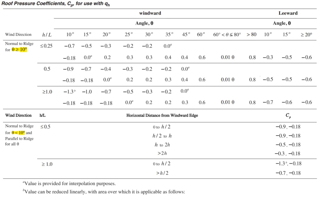 Roof Pressure coefficients,Cp,for use with qh(平均高度)