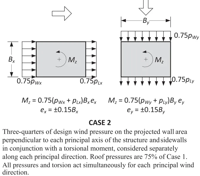 | 荷载模式: 75%风压+扭转力矩→考虑风压不均匀或偏心导致的扭矩 适用不对称的建筑 |